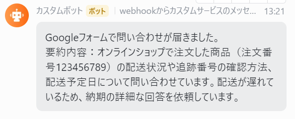 Googleフォームで問い合わせが届いたら、AIで内容を要約してLarkに通知する