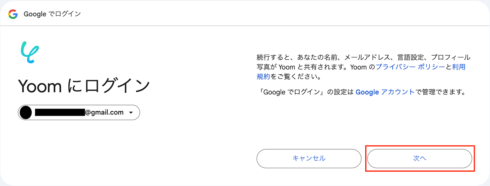 表示内容を確認して、「次へ」をクリックしましょう。