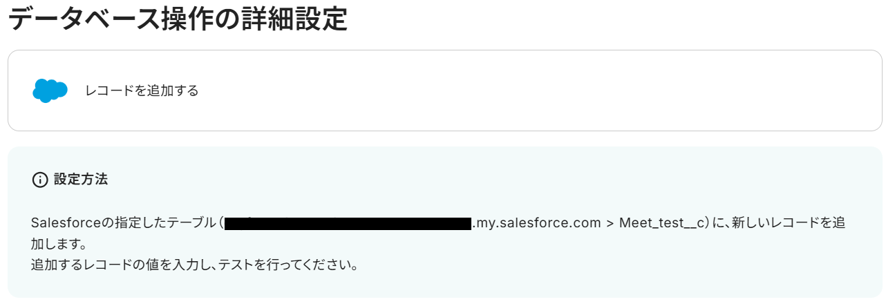 Google Meetから取得した内容をもとに、Salesforceでレコードを登録します。 「レコードを追加する」をクリックしましょう。