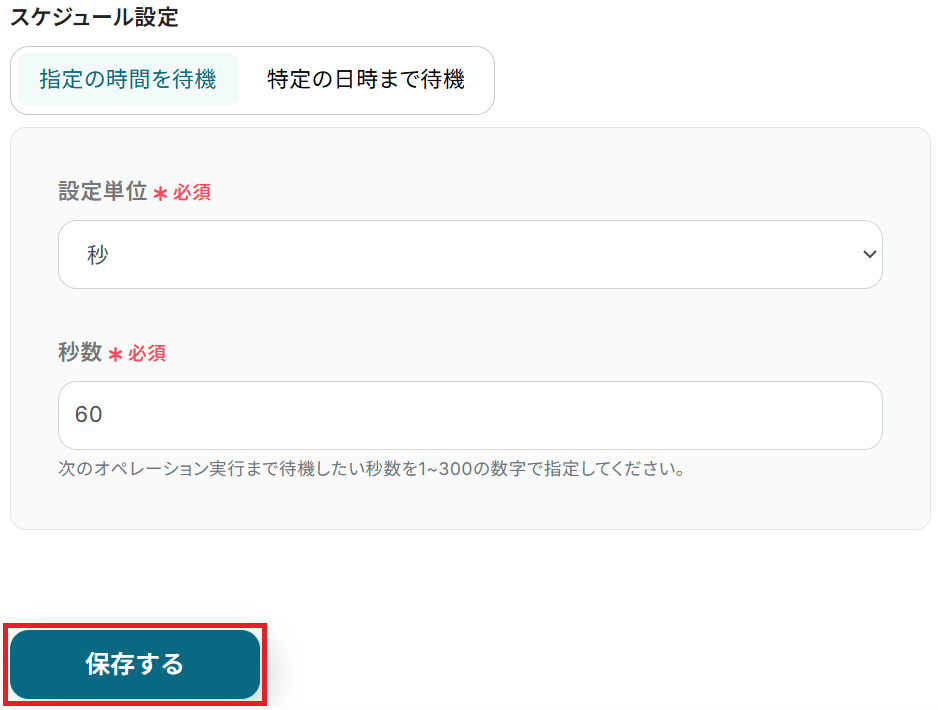 待機設定には「指定の時間を待機」と「特定の日時まで待機」の2種類あります。