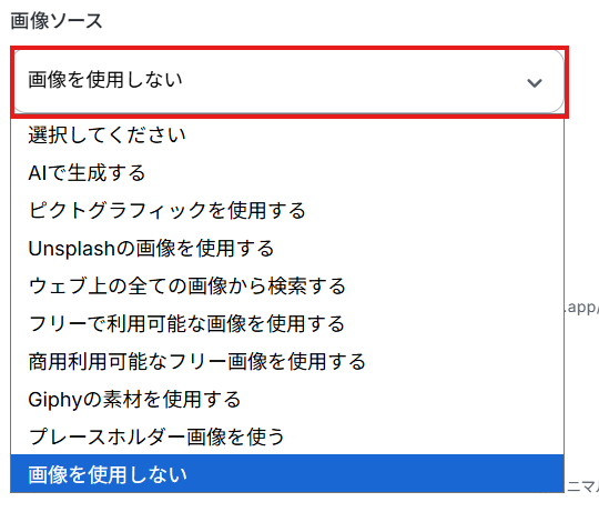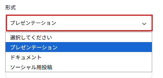 その他の項目は任意で設定してくださいね。 今回は例として、形式・カード数・追加指示・エクスポート形式・トーン・オーディエンス・画像ソースを設定しています。
