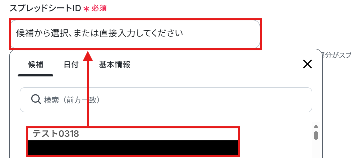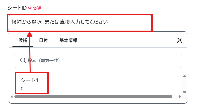 使用するGoogle スプレッドシートのスプレッドシートIDとシートIDを候補から選択しましょう。