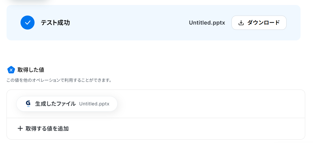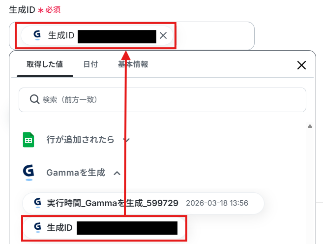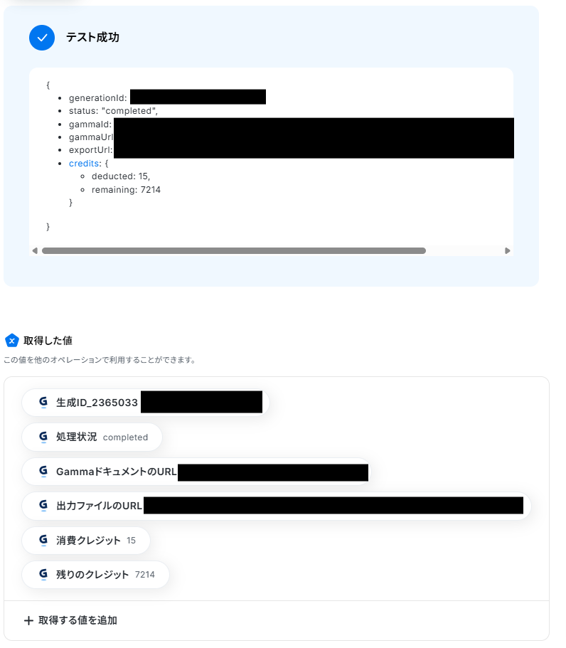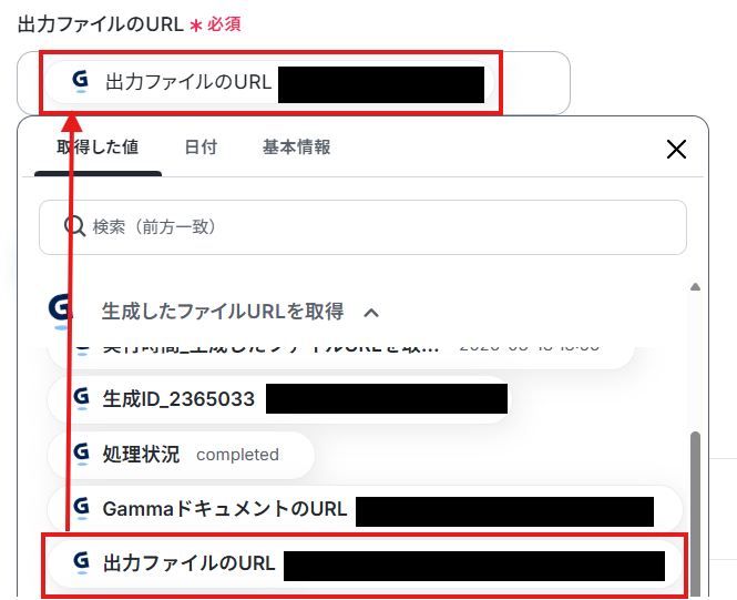 「Gammaで生成したファイルURLを取得」を選択します。
