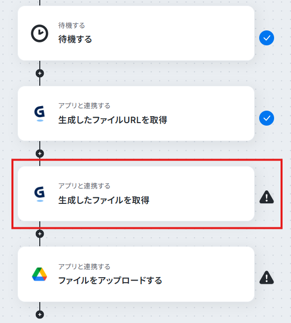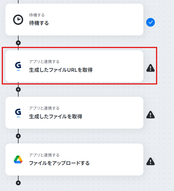 例えば、Gammaの「生成したファイルURLを取得」アクションの後に「承認を依頼する」オペレーションを追加することで、生成されたファイルを確認してから、後続処理に進むことができます。