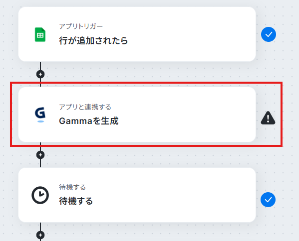 Google スプレッドシートのトリガー設定およびGamma・待機する・Google Driveのアクション設定