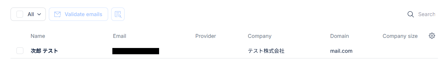 次に、Contactのデータを管理するためのGoogle スプレッドシートを用意しましょう。 今回ご紹介するテンプレートは、Google スプレッドシートに行が追加されたら起動します。 そのため、実際にテストを行うにはGoogle スプレッドシートを用意する必要があります。 今回は以下のGoogle スプレッドシートを用意しました。