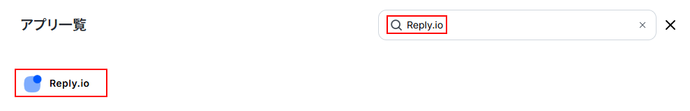 Reply.ioをマイアプリ連携 マイアプリ画面にある+新規接続 ボタンをクリックすると、入力欄が表示されます。Reply.io と入力し、表示されたアプリをクリックしましょう