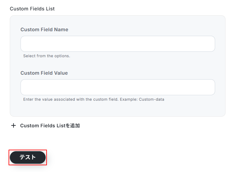 その他の項目について、今回は使用しないため空欄となっておりますが、使用したい方は注釈を確認し設定してください。※入力欄に直接記入すると入力した値が固定値となり、このテンプレートを通して作成される全てのContactに適用されますのでご注意ください。