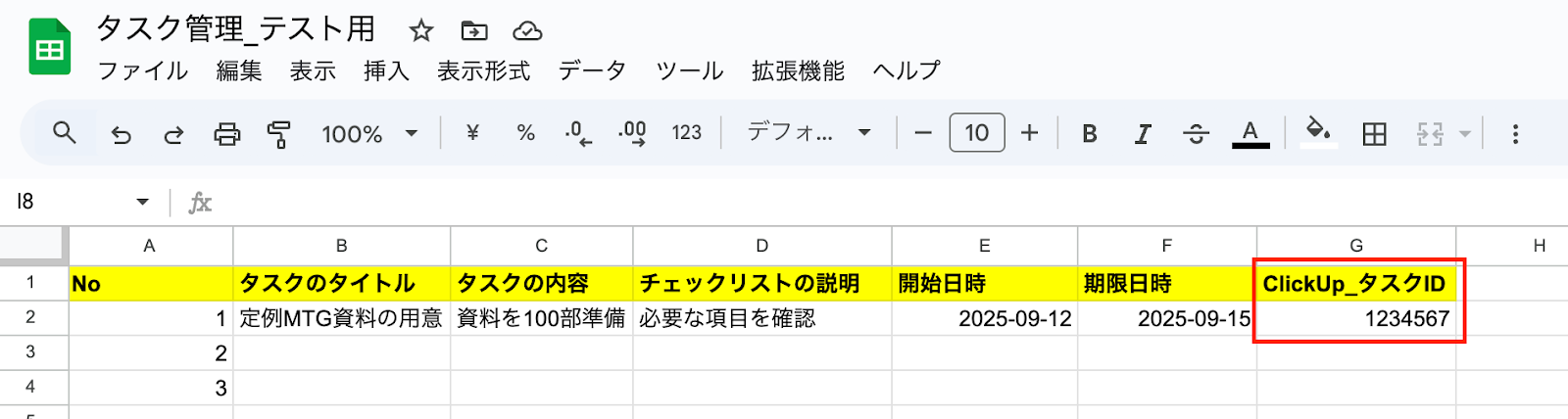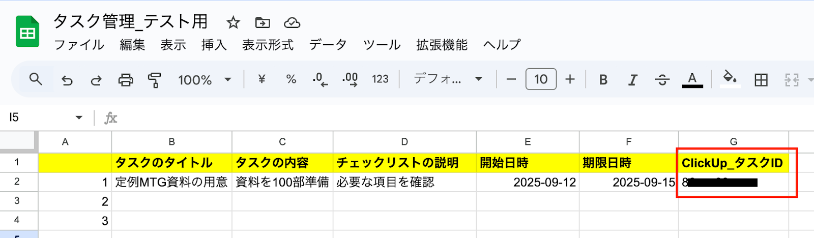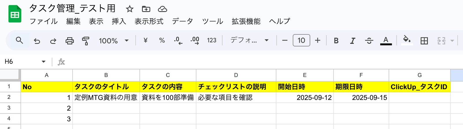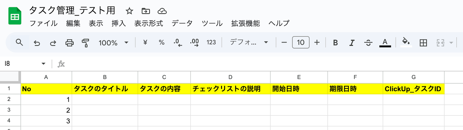 (「ClickUp_タスクID」はClickUpにタスクを作成した後に更新するので、この時点では空欄でOKです!)