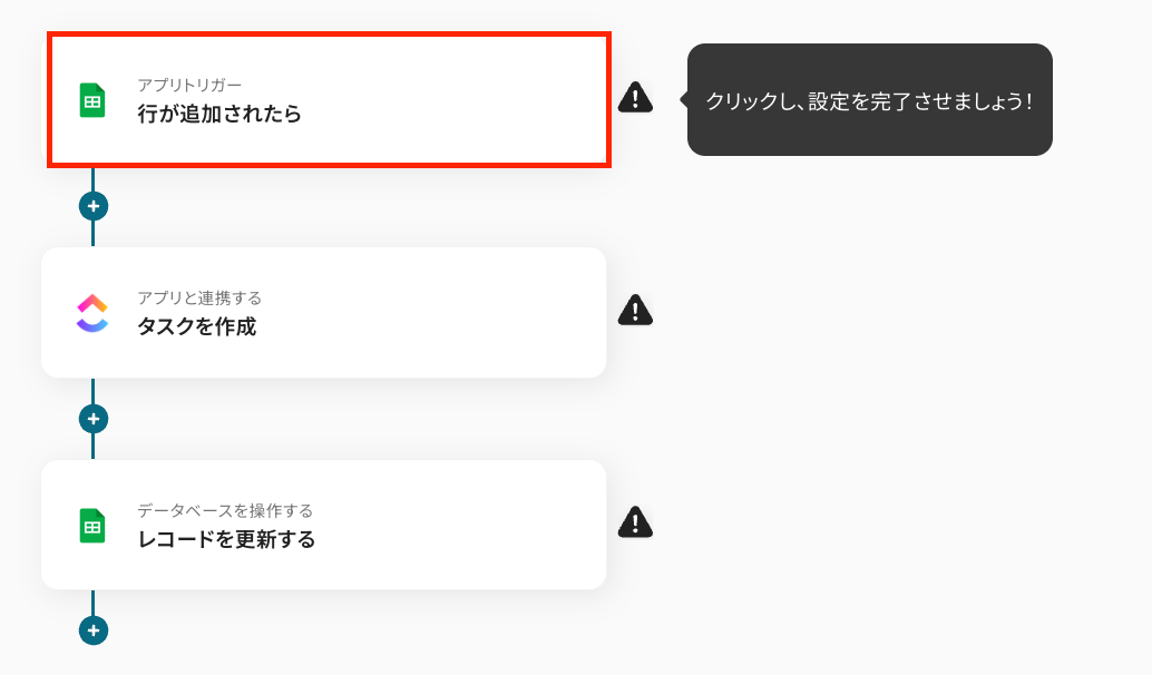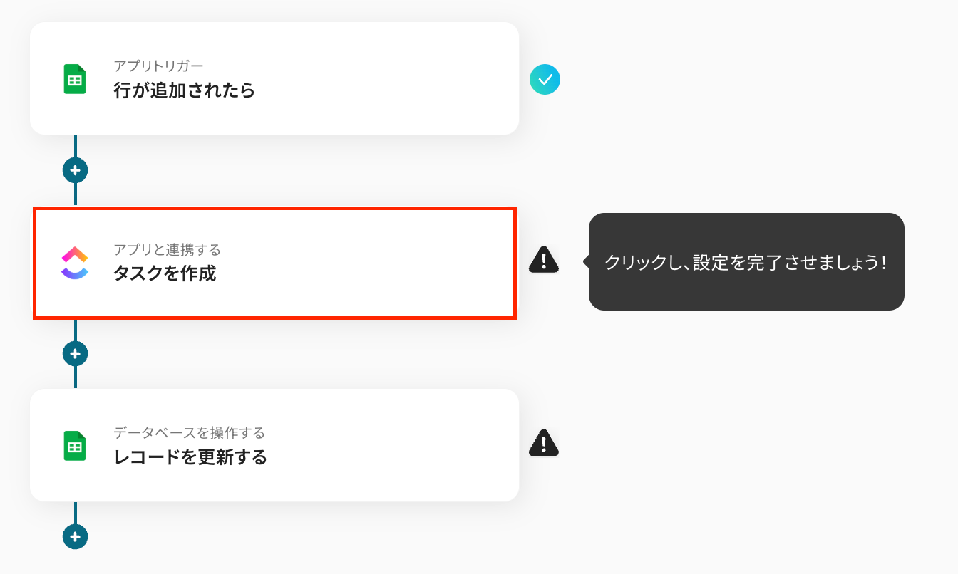 このワークフローを活用すれば、Google スプレッドシートに行が追加されるだけでClickUpへ自動でタスクを作成できるため、ClickUpとGoogle スプレッドシート間の連携を効率化し、タスク管理の精度を高めることが可能です。