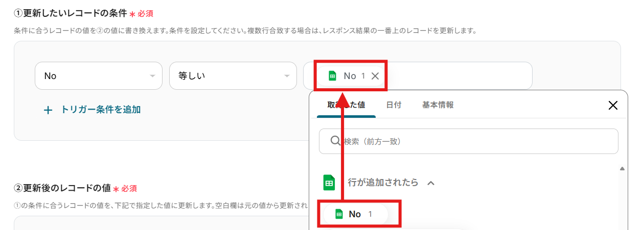 分岐設定を組み合わせることで、複数の条件に一致する行だけを連携することができます。