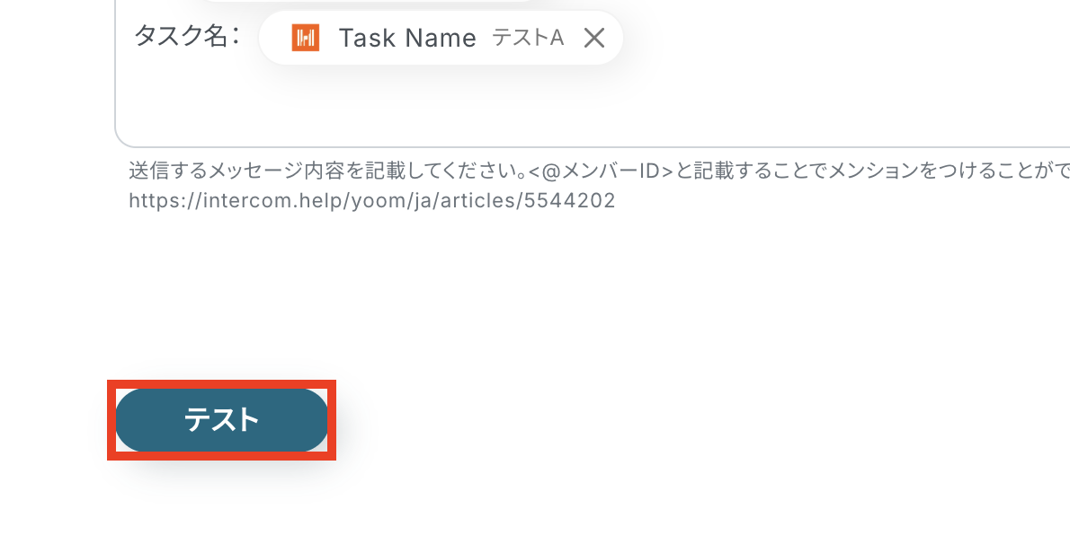 タスクの作成が終わったら、「テスト」ボタンをクリックします。