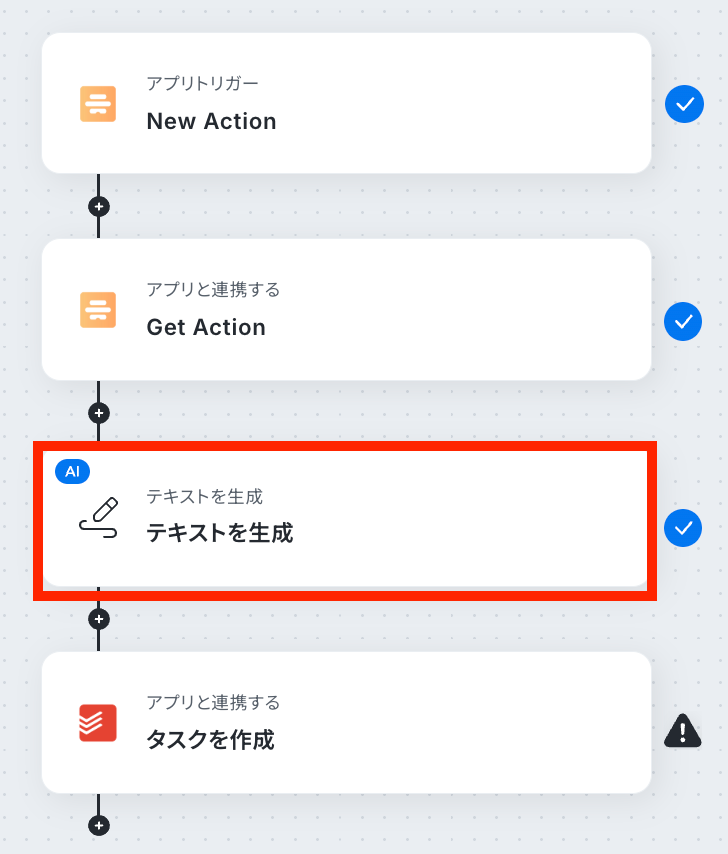 Gmailのトリガー設定では、「依頼」や「要対応」など、タスク化したいメールに含まれる特定のキーワードを設定してください。 AI機能のテキスト抽出では、タスク名や期限など、メール本文からどの情報を抽出するかを具体的に指示することが可能です。 Todoistでタスクを作成する際に、AI機能で抽出したデータを元に、タスクのタイトルや説明、期日などを自由にマッピングしてください。 ■注意事項