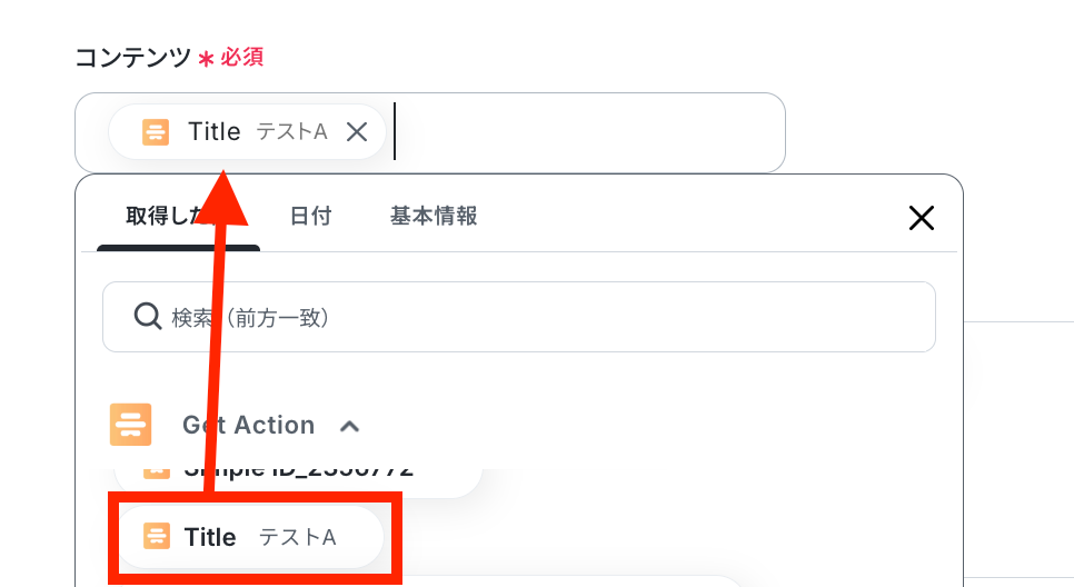 コンテンツや説明文を設定します。 取得した値を活用して設定しましょう!