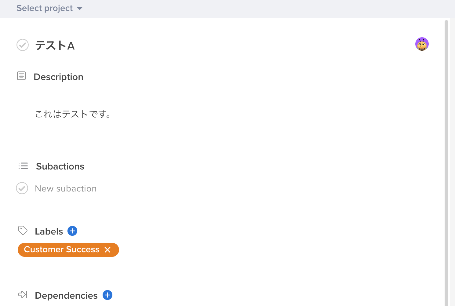 Zendeskのトリガー設定では、連携したいZendeskアカウントのサブドメインを任意で設定してください Todoistでタスクを作成するアクションでは、Zendeskのトリガーから取得したチケットの件名や内容などを引用し、タスクのタイトルや説明に自由に設定できます ■注意事項