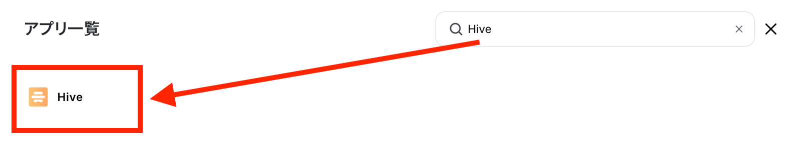 ステップ3:Hiveのトリガー設定 まずは、トリガーとなるアプリの設定を行います。1つ目の赤枠をクリックしてください。