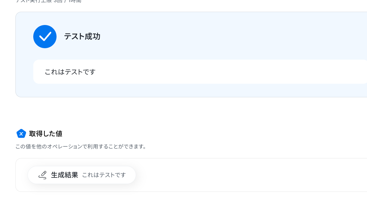 ※取得した値 とは? トリガーやオペレーション設定時に、「テスト」を実行して取得した値のことを指します。 後続のオペレーション設定時の値として利用でき、フローボットを起動する度に変動した値となります。