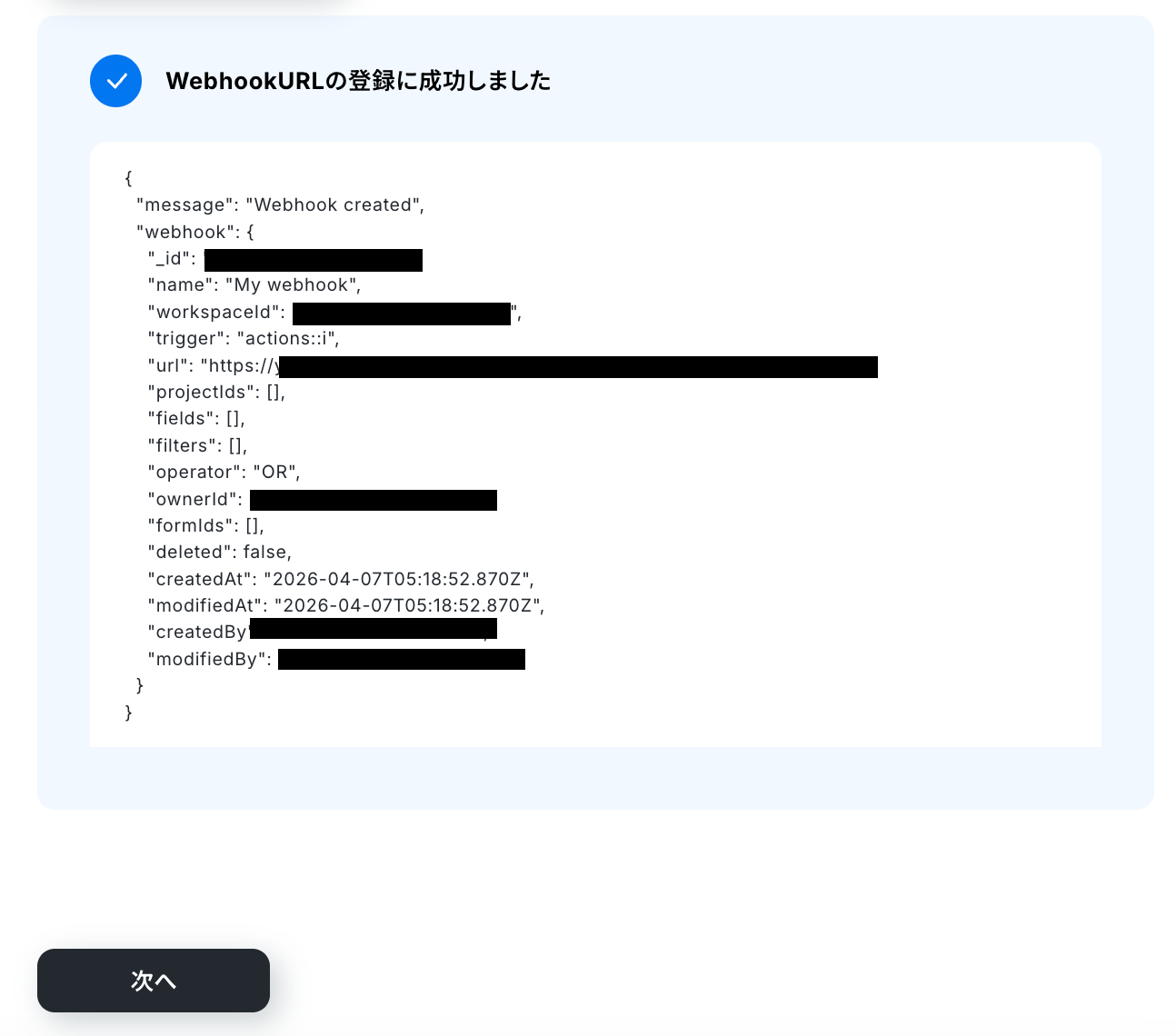 全て設定できたら、「WebhookURLを登録」をクリックしましょう!