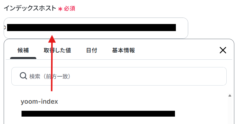 インデックスホストは、枠内をクリックし表示される候補から選択しましょう。