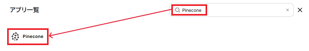 アプリ一覧の検索窓からPineconeを検索し、クリックしてください。