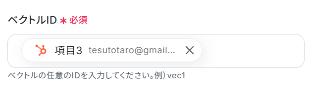 HubSpotのトリガー設定では、自動化の対象としたいフォームを任意で選択できます。 Pineconeに連携するHubSpotのフォーム情報は、名前やメールアドレスなど、必要な項目を任意で設定可能です。 Pineconeでベクトルを追加・更新するアクションでは、対象のインデックスホストや紐付けるメタデータを任意で設定できます。 ■注意事項