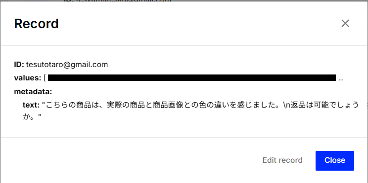 トリガーを変更した場合は、忘れずにステップ4「テキストをベクトル化」のテキスト内容とステップ5「ベクトルを追加・更新」のベクトルID・メタデータも変更しましょう。