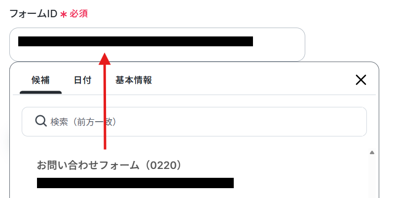 フォームIDは、事前準備で作成したものを候補から選択してください。