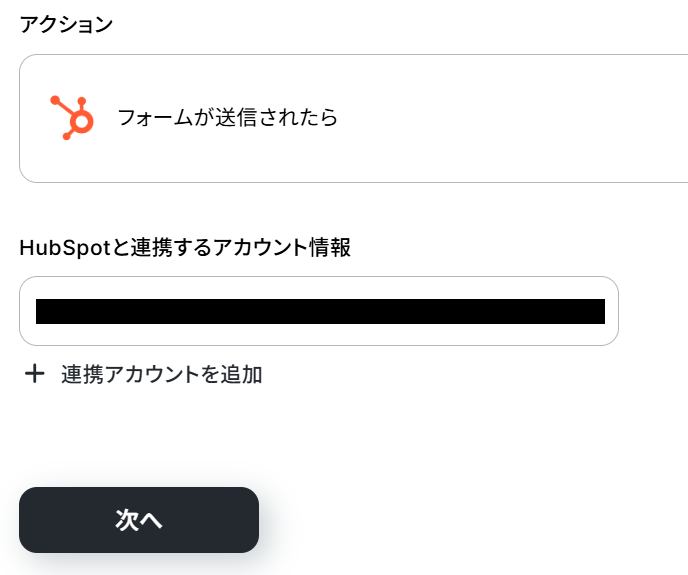 Yoomと連携するHubSpotのアカウントに間違いがないかを確認し、「次へ」をクリックしてください。