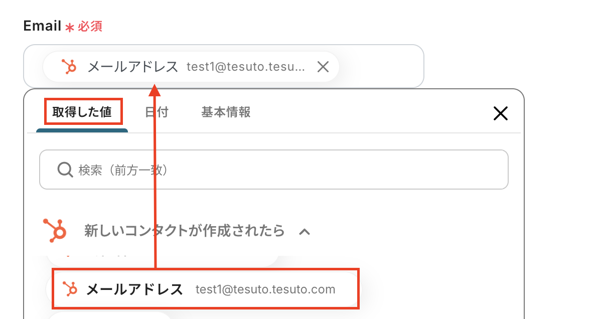 EmailはHubSpotの取得した値から選択してください。