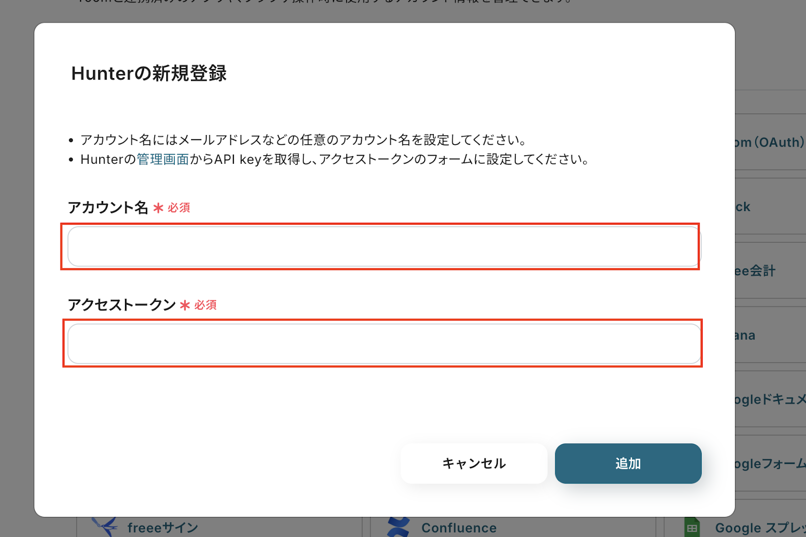 ・Googleフォーム、HunterのそれぞれとYoomを連携してください。