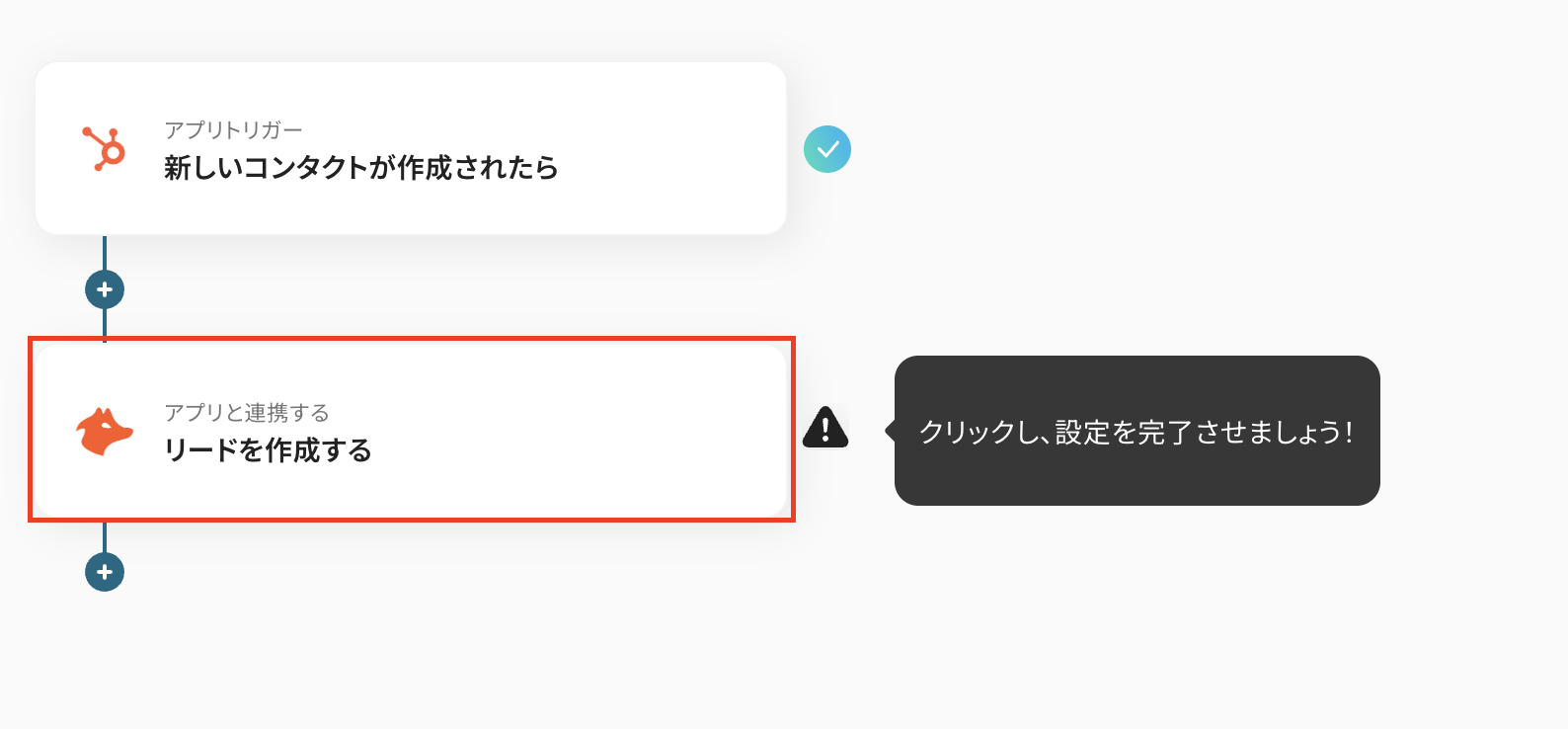 API接続設定を行い、ノーコードでリードを作成できるようにします。