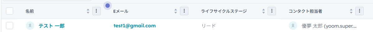 4.続いて、HubSpotのページで、テスト用のコンタクトを実際に作成しましょう。
