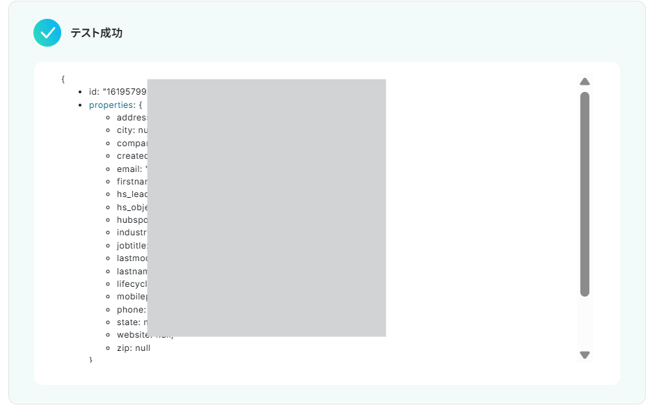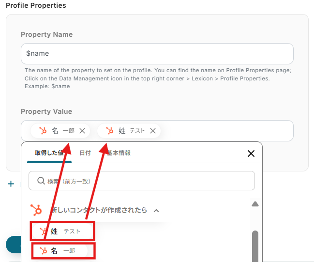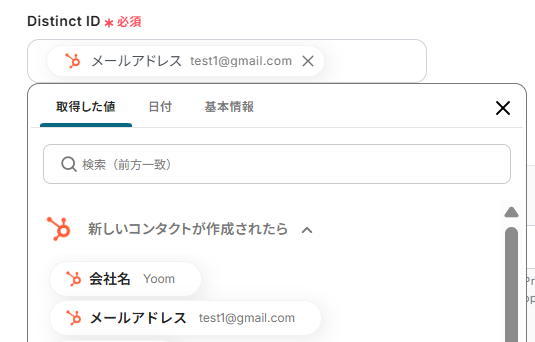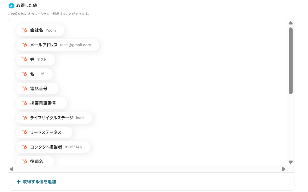 取得した値を利用することで、HubSpotにコンタクトが作成されるたび、そのコンタクト情報を自動で反映できます。
