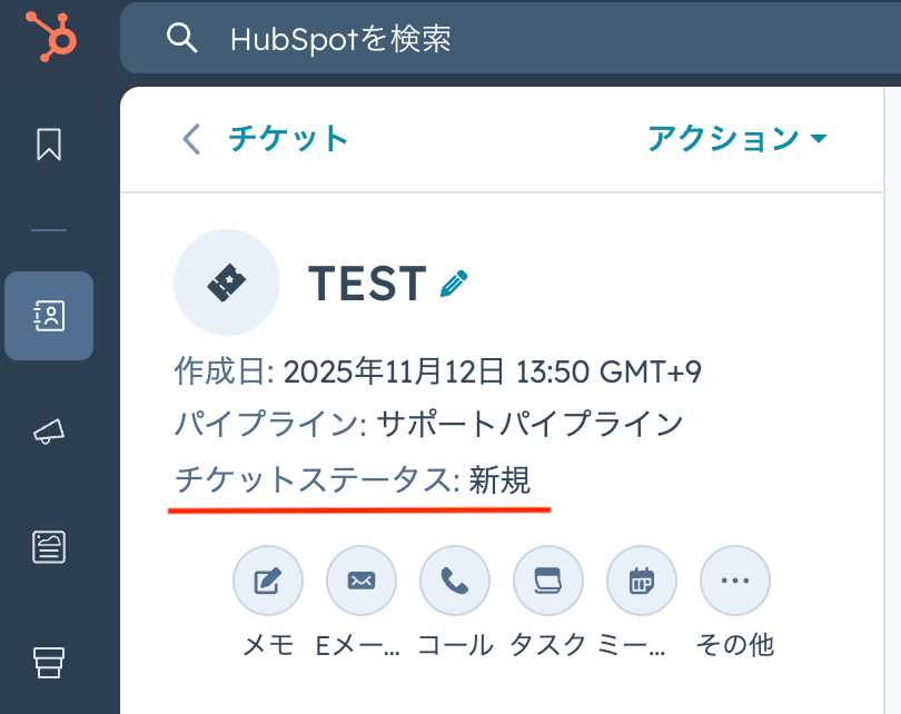 事前準備としてHubSpotでチケットを更新しておきましょう。