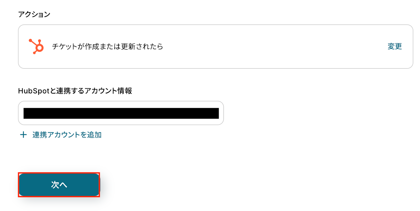 HubSpotと連携するアカウント情報に問題がなければ、「次へ」をクリックします。