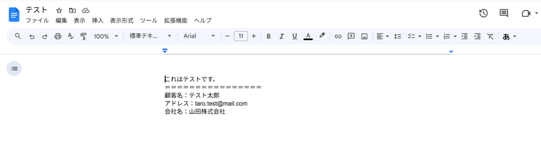 下へ進み、追加するテキストに入力した内容がGoogleドキュメントに追加されます。