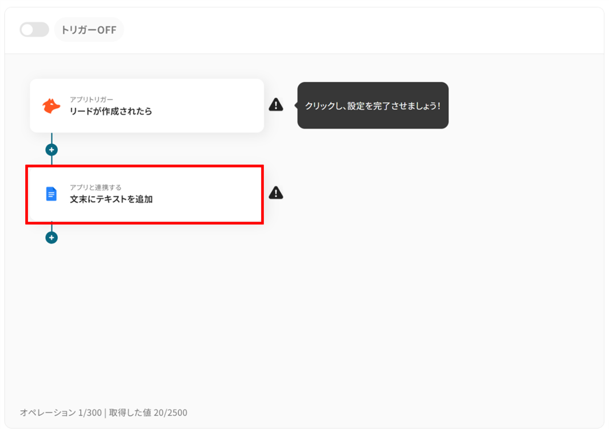 Hunterで特定条件に合うリードが作成されたら、Google ドキュメントにテキストを追加する
