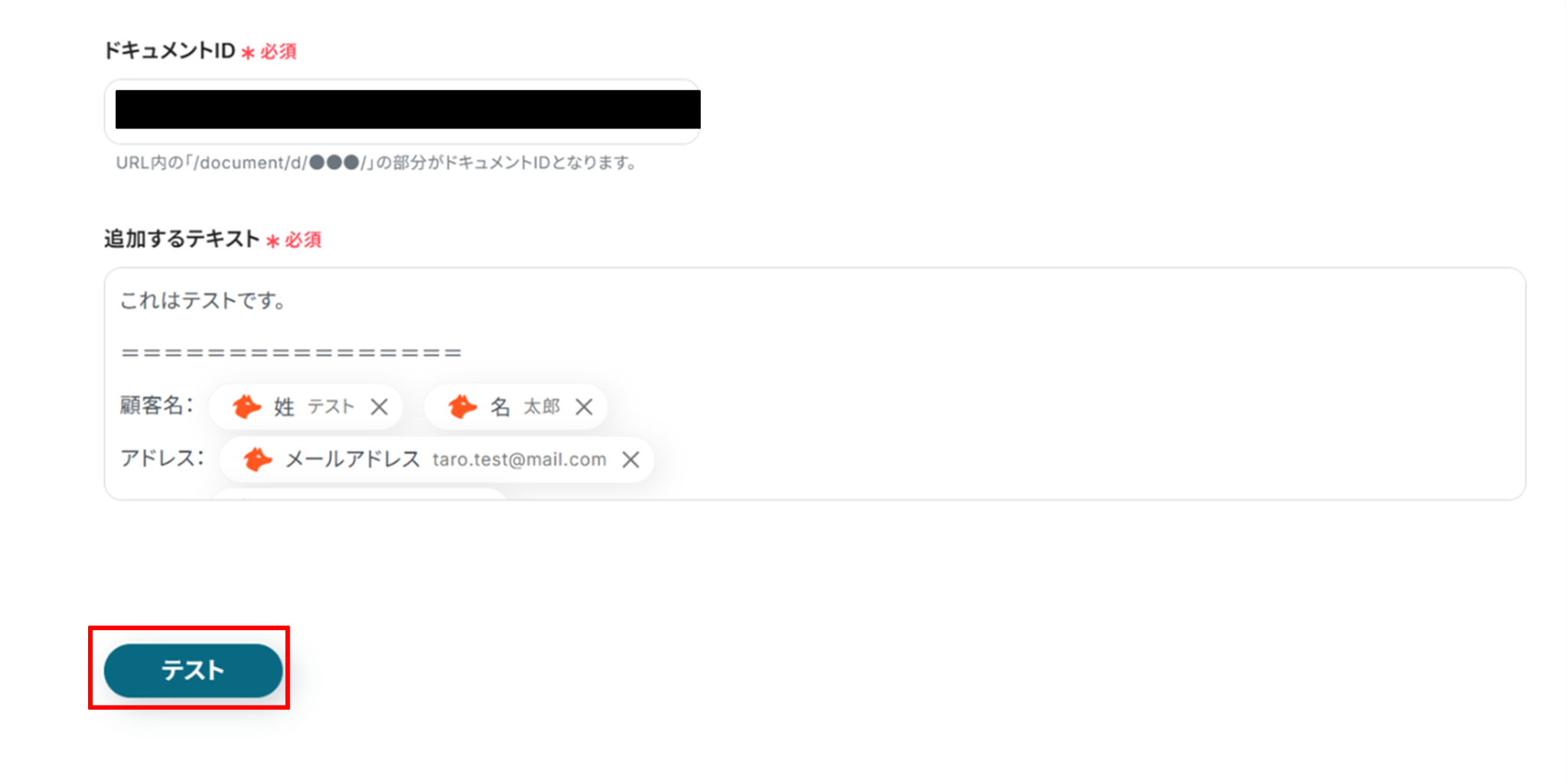入力が終わったら「テスト」をクリックしましょう!