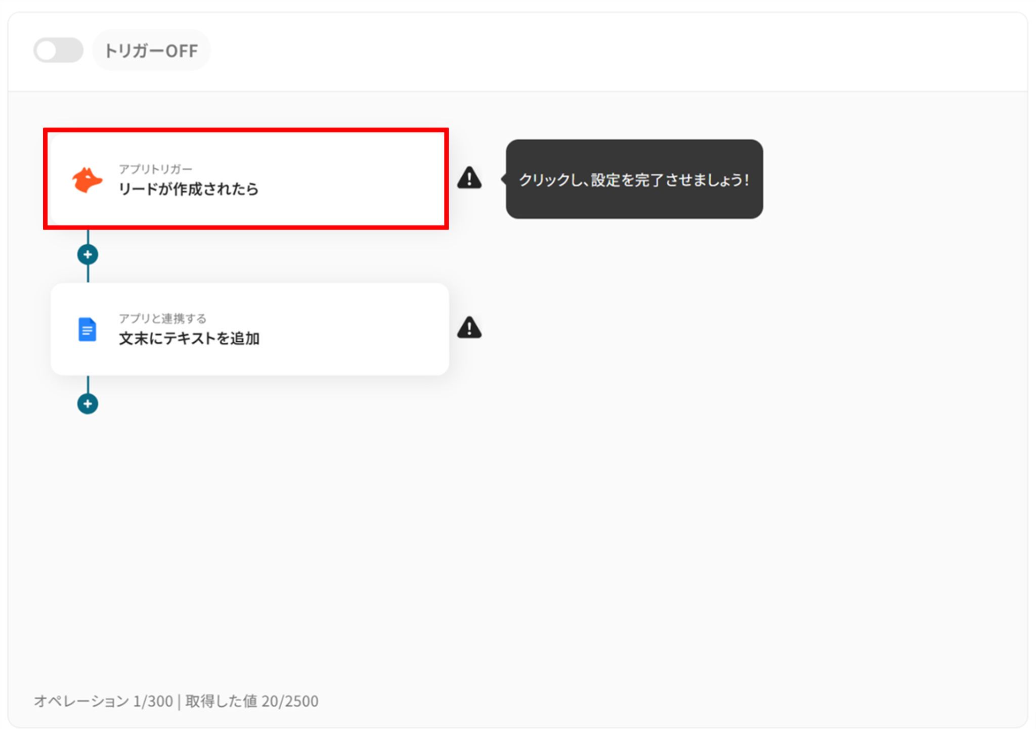 今回は「Hunterでリードが作成されたら、Google ドキュメントにテキストを追加する」フローを作成していきます!