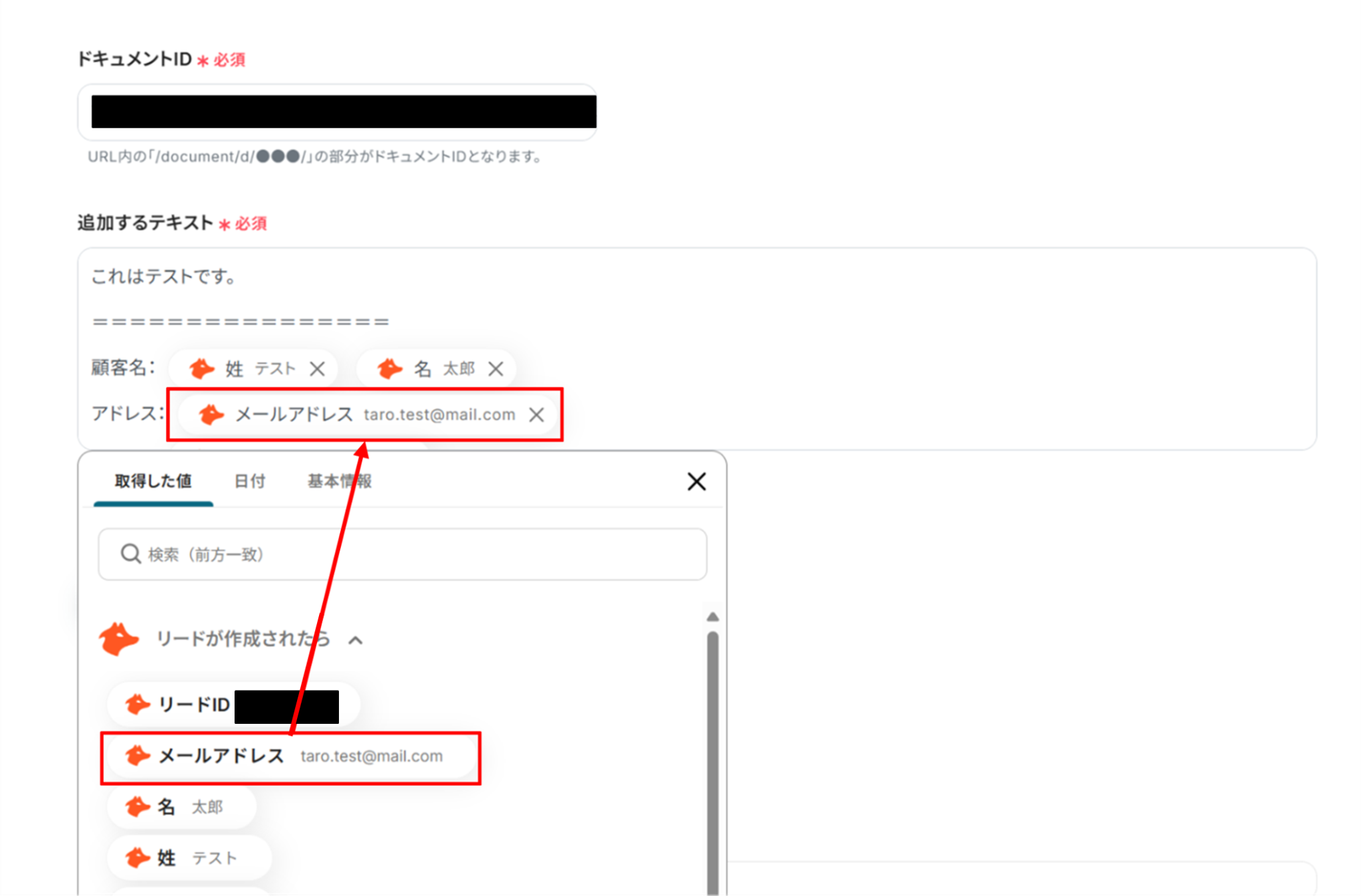 (3)「API接続設定」画面から、ドキュメントIDを候補から選択します。