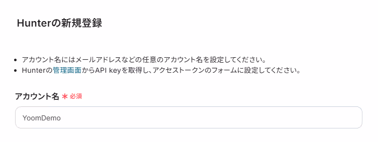 今回はYoomを使用して、ノーコードでHunterとZoomの連携を進めていきますので、もしまだYoomのアカウントをお持ちでない場合は、こちらの登録フォームからアカウントを発行しておきましょう。