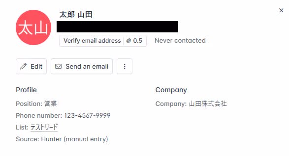 作成したリードの内容が反映していればOKです。