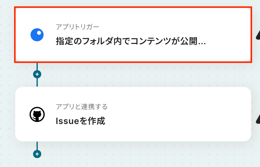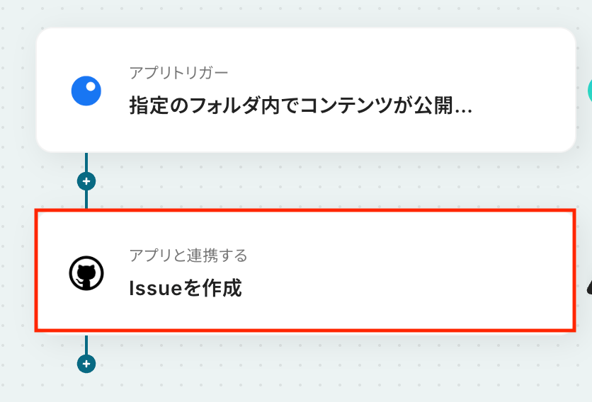 - 次に、トリガーでGitHubを選択し、「Issueが新しく作成されたら」というアクションを設定します。