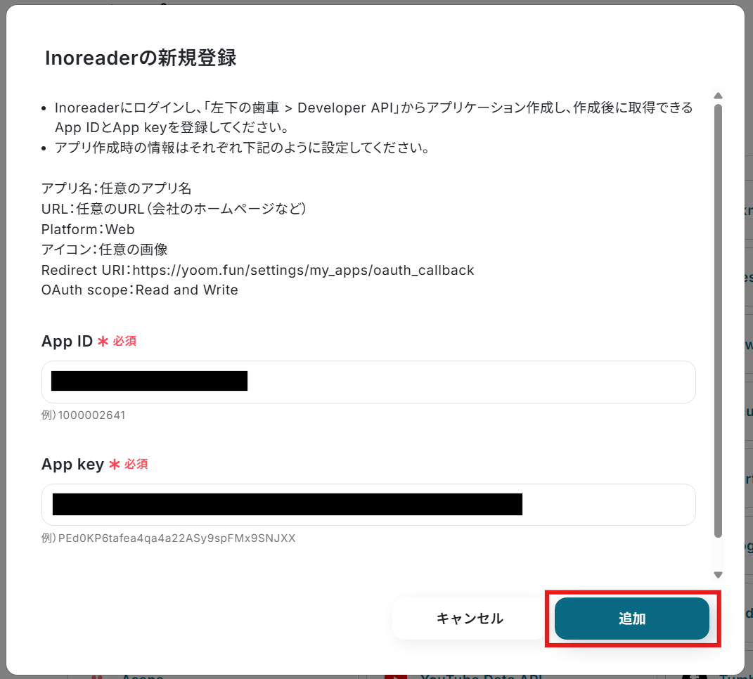 - Inoreader、NotionのそれぞれとYoomを連携してください。