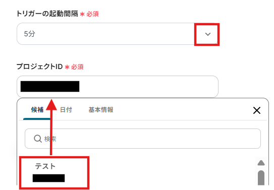 4.「プロジェクトID」を候補から選択します。