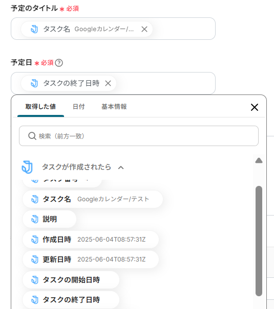 5.「予定の説明」は定型文や前ステップの取得値を組み合わせることで、タスクごとの内容に合わせて自動通知できます。