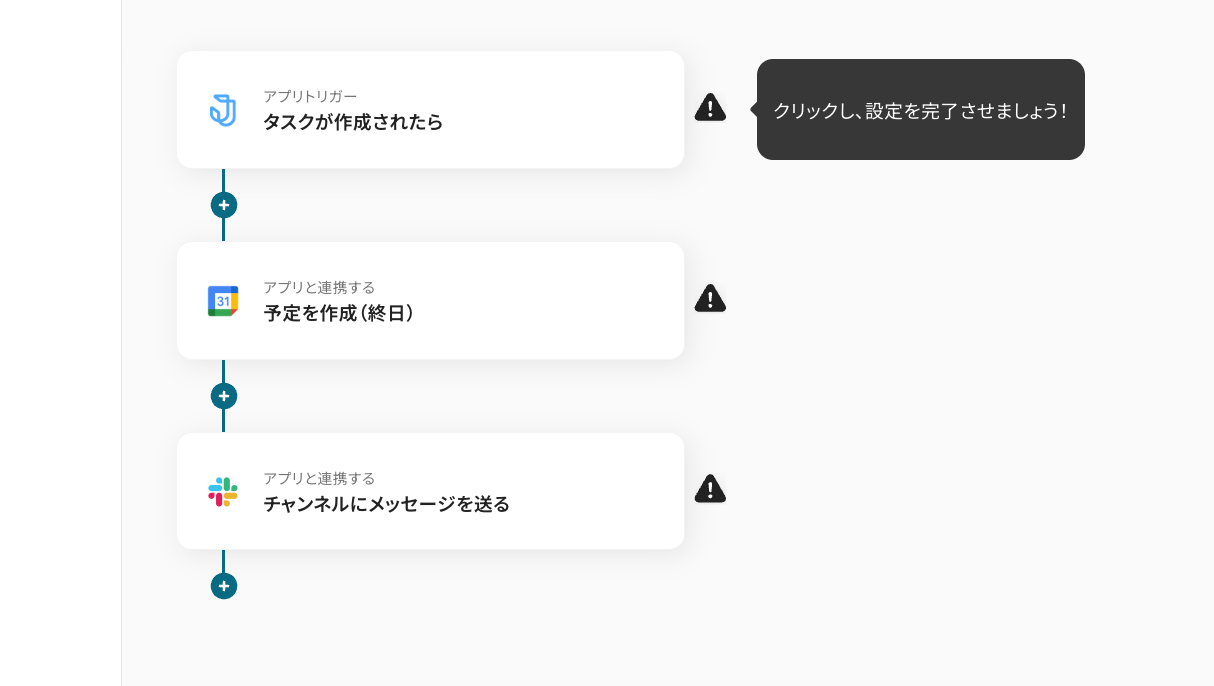 これにより、タスクの締切を常にGoogleカレンダーで把握できるようになり、スケジュール管理の精度向上に繋がり、担当者はより安心して本来注力すべきコア業務に集中できる環境が整いますね。