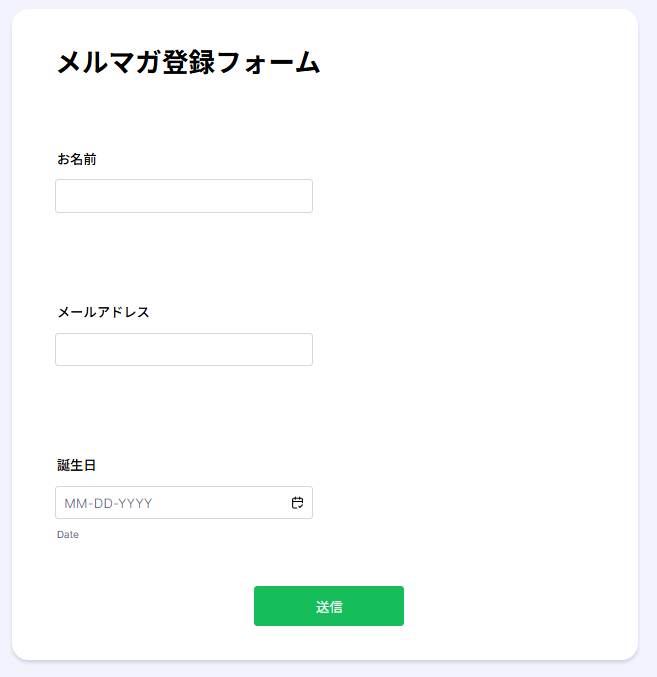 まだ連携したいJotformのフォームを作成していない方は、このタイミングで作成しておきましょう! 今回は、下記のようなフォームを作成したので、ぜひ参考にしてください!※すでに連携したいフォームがある場合は、新たに作成する必要はありません。