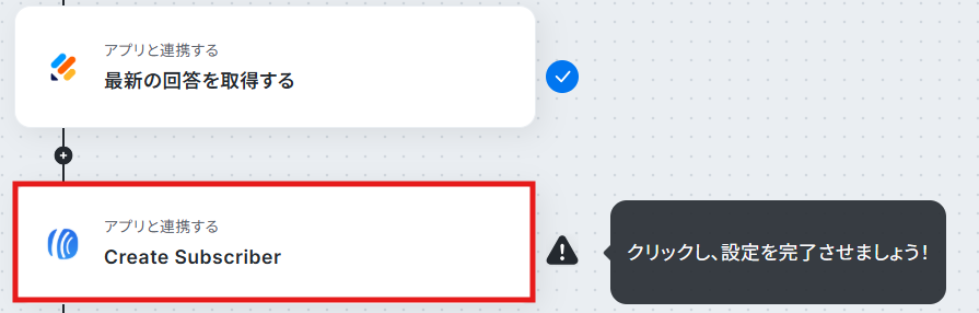 ステップ5:Aweberのアクション設定 最後に、Jotformで送信された回答をもとに、AweberにSubscriberを作成する設定を行います。 「Create Subscriber」をクリックしてください。