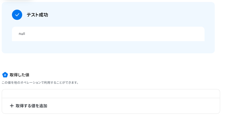 ※取得した値 とは? トリガーやオペレーション設定時に、「テスト」を実行して取得した値のことを指します。 後続のオペレーション設定時の値として利用でき、フローボットを起動する度に変動した値 となります。